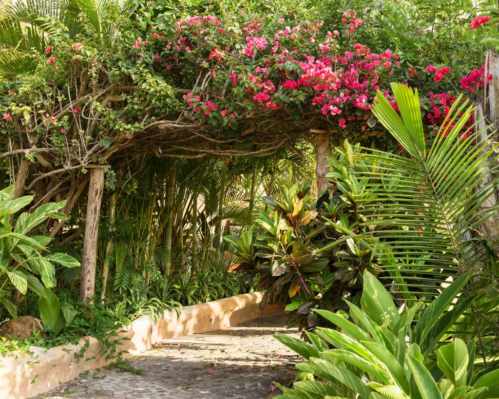 Garden rooms, decorated in unique and varying styles, boast a terrace overlooking the lush tropical vegetation.