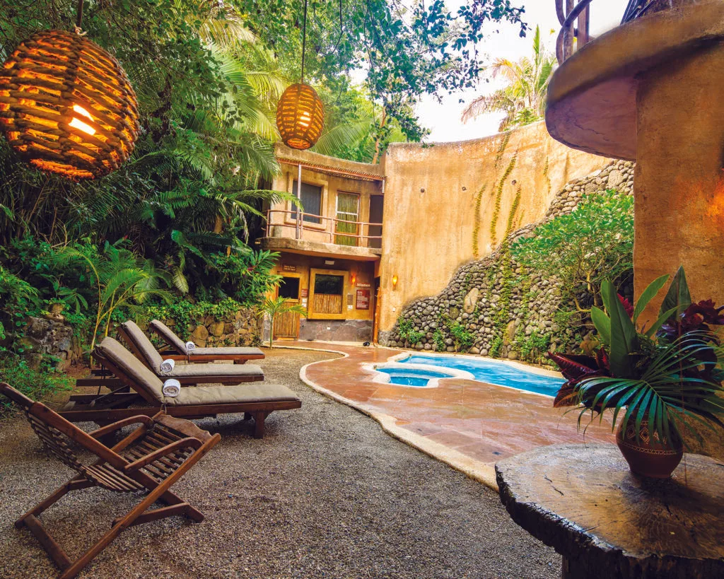 Take a dip in the large swimming pool, wading pool, or Jacuzzi nestled amidst banana trees, bougainvillea flowers, and palm trees. Watch the sunset over the ocean from a reclining beach chair or take a nap in a hammock under the shade of the thatched-roof palapa. Step right onto Chacala Beach for swimming, paddle-boarding, or kayaking.