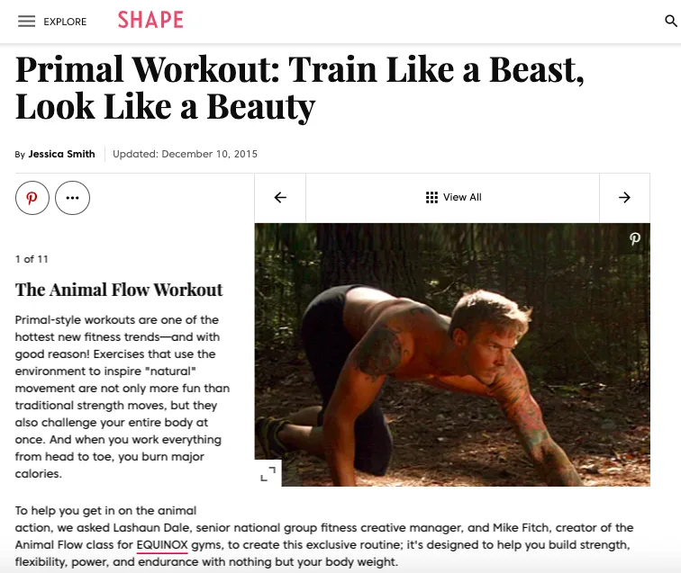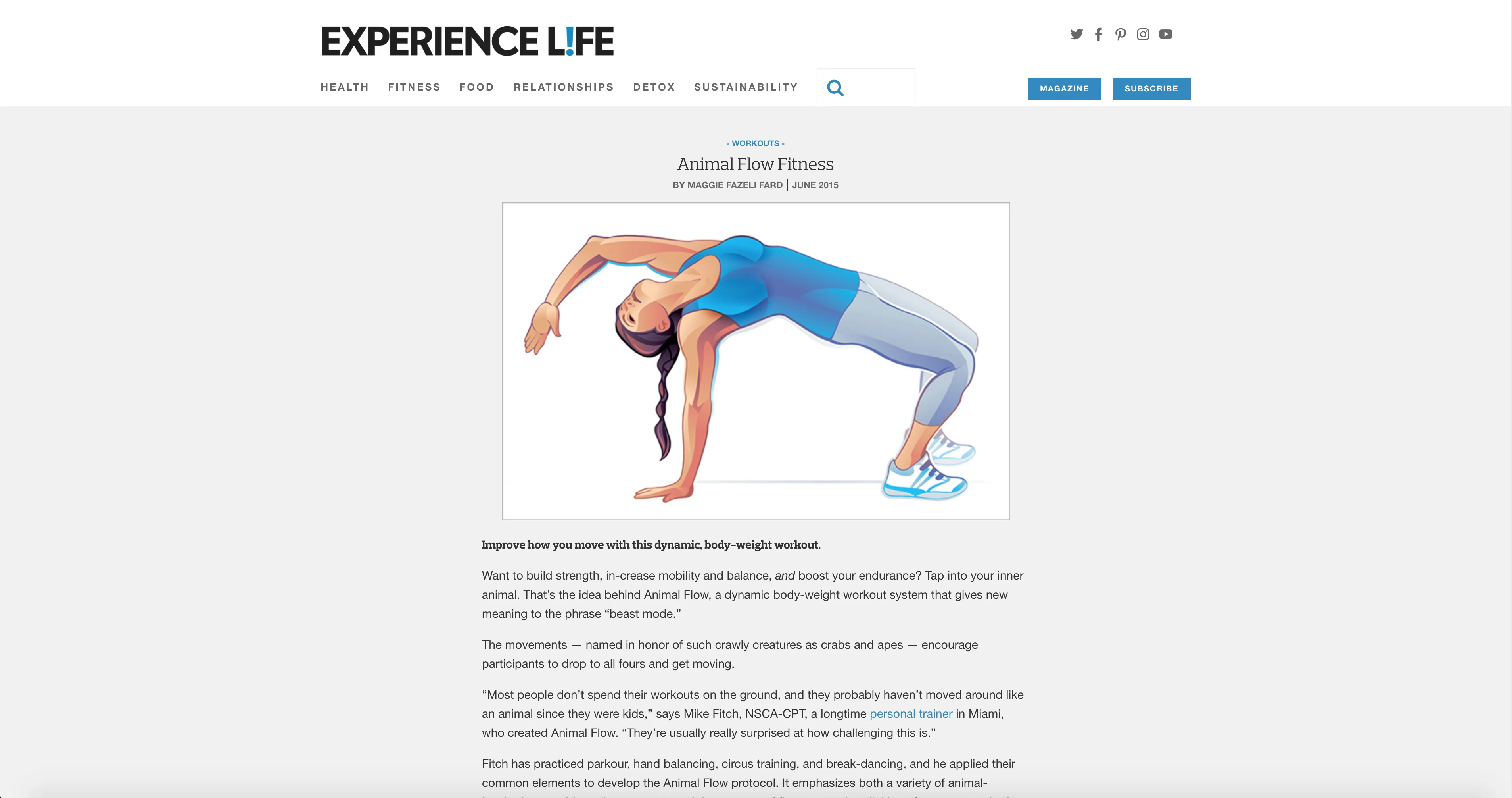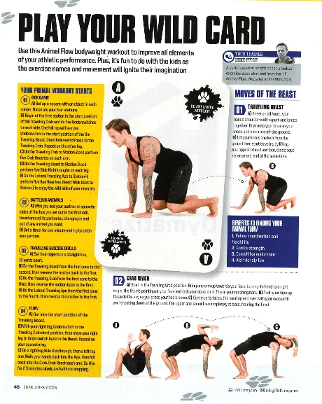 “Want to build strength, in-crease mobility and balance, and boost your endurance? Tap into your inner animal. That’s the idea behind Animal Flow, a dynamic body-weight workout system that gives new meaning to the phrase “beast mode.”"