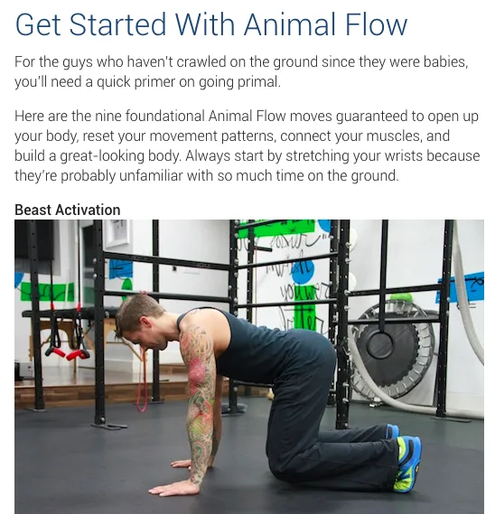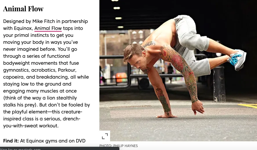 “Like thinking of yourself as a beast when you work out? Then Animal Flow is for you.”