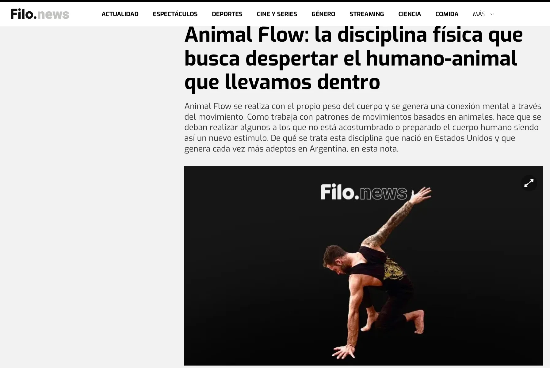 Animal flow. El animal que llevas dentro.Miguel Campo (39 años) es técnico dental. Pero, desde hace cuatro años, se convierte, dos veces a la semana, en un lagarto. Avanza, replicando el traqueteo de la espina dorsal, por el suelo de R10Lab Entrenamiento Natural, centro que da formación de animal flow a profesionales. Crab reach (alcance de cangrejo), loaded beast (bestia cargada), ape (mono). Rafa Díez, uno de los nueve maestros instructores de esta disciplina en el mundo, dicta animales y los alumnos sincronizan una coreografía. “La clave es el control corporal para saber hacia dónde, cómo y por qué me muevo”, resume.
