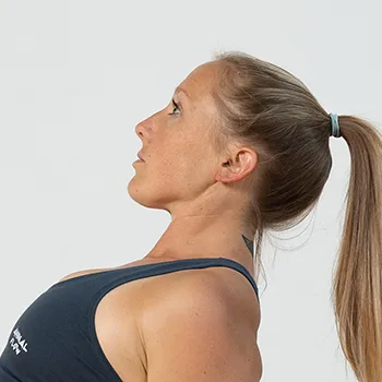 1. Starting from a Crab base position allows you to retract the chin (pulling it in towards the neck) and slightly tilt the rear of your head back and down (into a small amount of extension). This is opposite to the forward head position that contributes to Text Neck Syndrome so is truly beneficial for almost anyone.