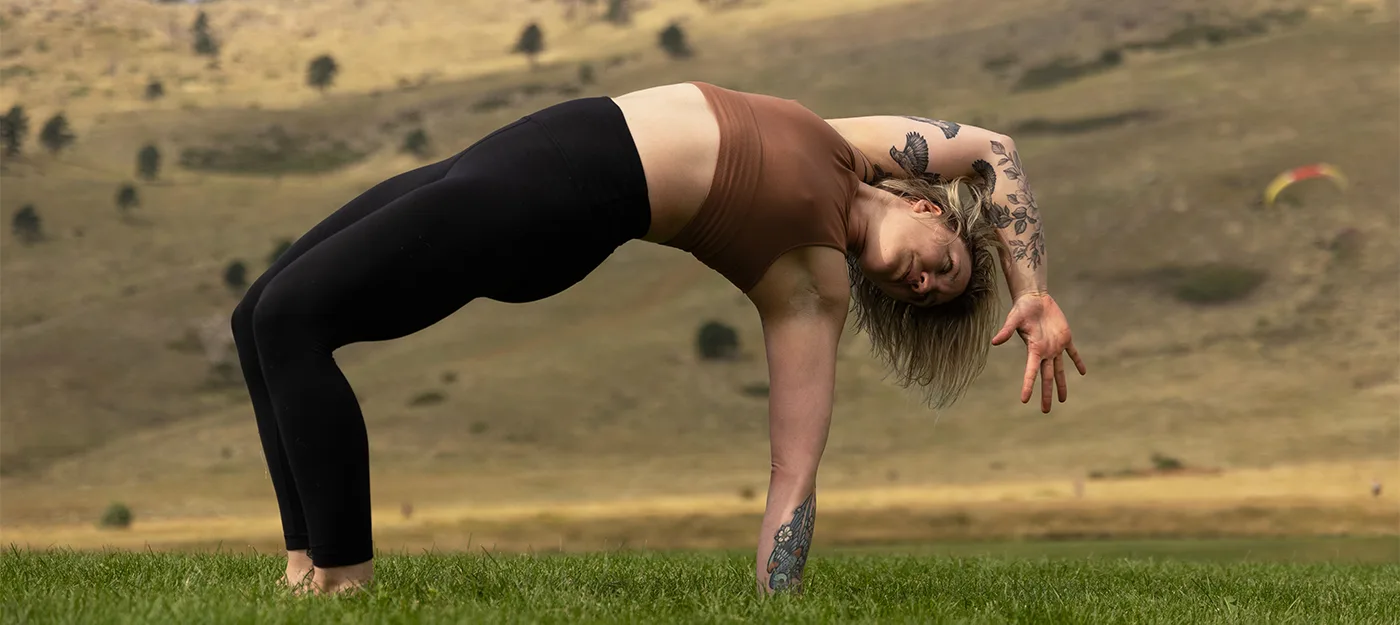 2. Pause in the 3-Point Bridge phase of Crab Reach. With your eyes to the sky and your neck long, you’ll likely feel the muscles on the front of your neck (your neck flexors) begin to work a little harder as they help to keep your head from falling toward the ground. Don’t rush past this phase; spend some time here to self-assess how it feels.