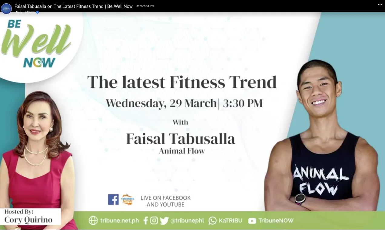 Animal Flow Facebook Live feature in “Be Well Now” by the Daily Tribune – a broadsheet publication in the Philippines with Regional Leader Faisal Tabusalla