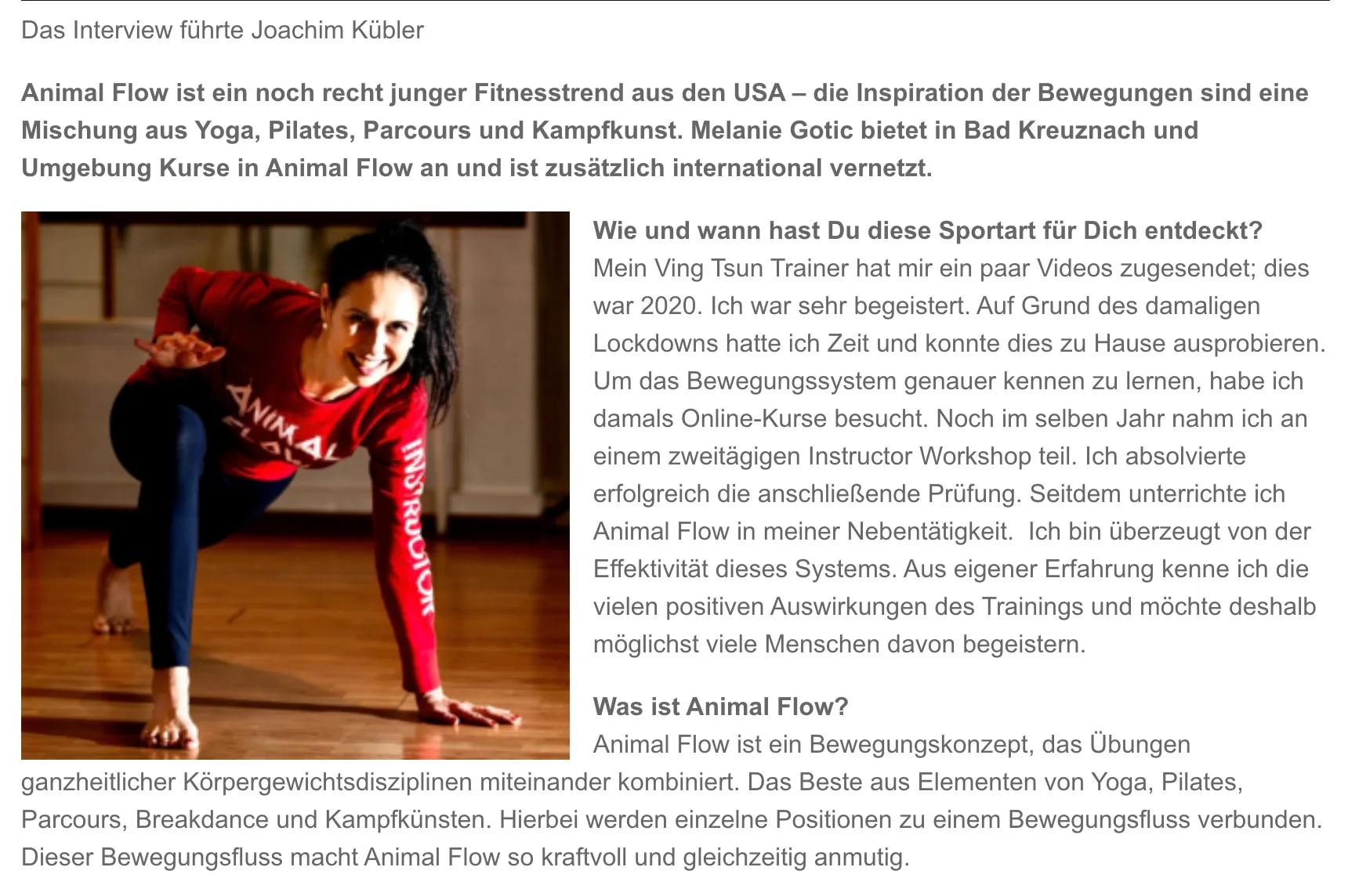 Interview/Video: Regional Leader Melanie Gotic über den Fitnesstrend “Animal Flow”